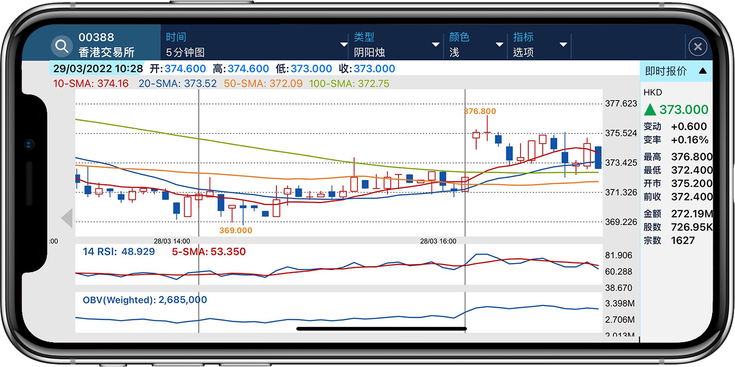 提供详尽即时行情包括第一档买卖价的挂单股数、成交纪录、资金流向、互动即时图表及同行表现等,无需手动,所有资讯将自动更新